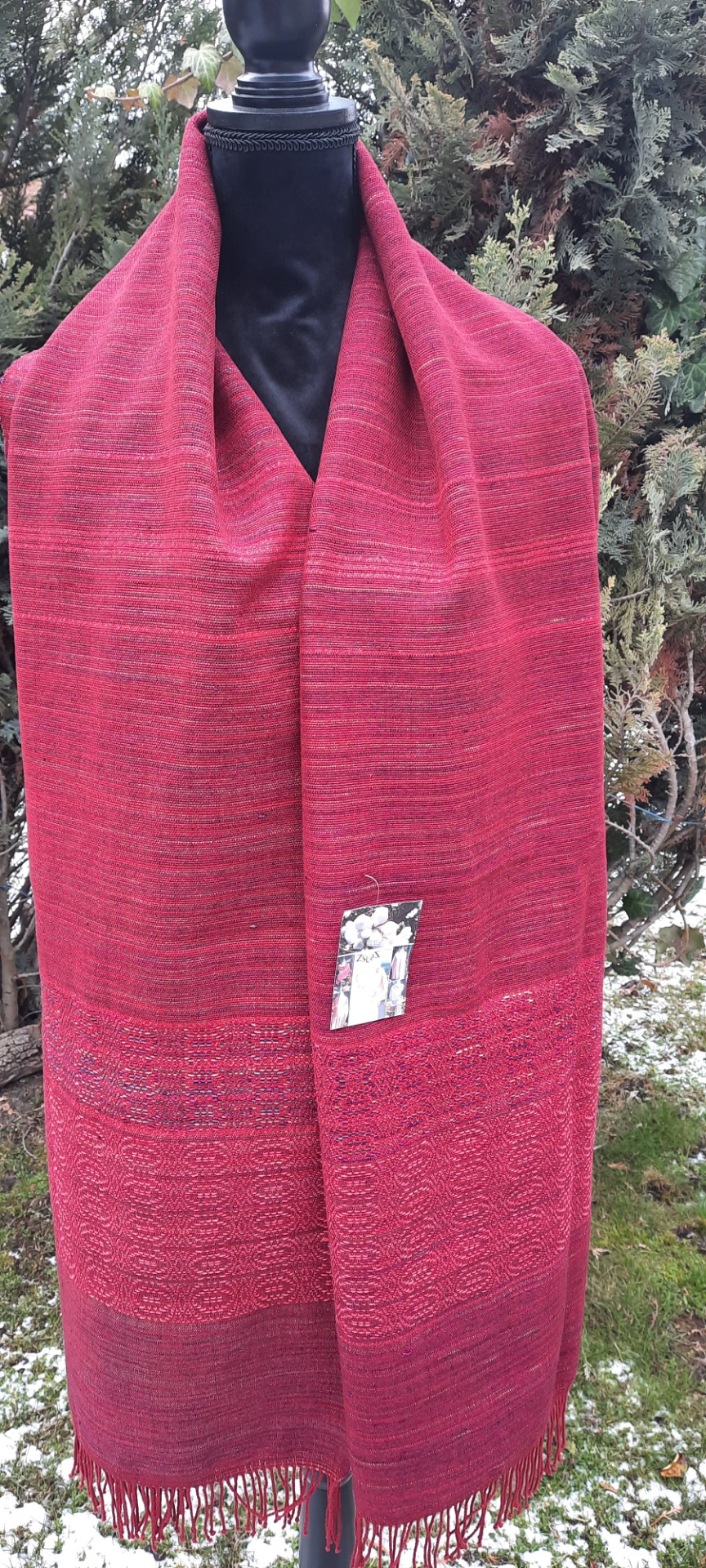 Kézi festésű , 100% gyapjú fonalból szőtt stóla. Két szélén rojtozva .